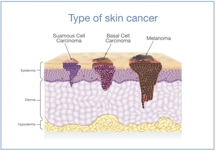 The two most common types of skin cancer are Basal Cell (BCC) and Squamous Cell (SCC).