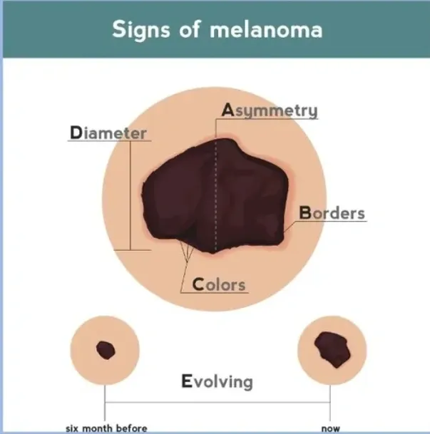 Most Dermatologists use the “ABCDE” rule to help determine the status of a mole. Upon examination, this method will help us determine whether an abnormal growth may be Melanoma. The “ABCDE” rule is as follows: